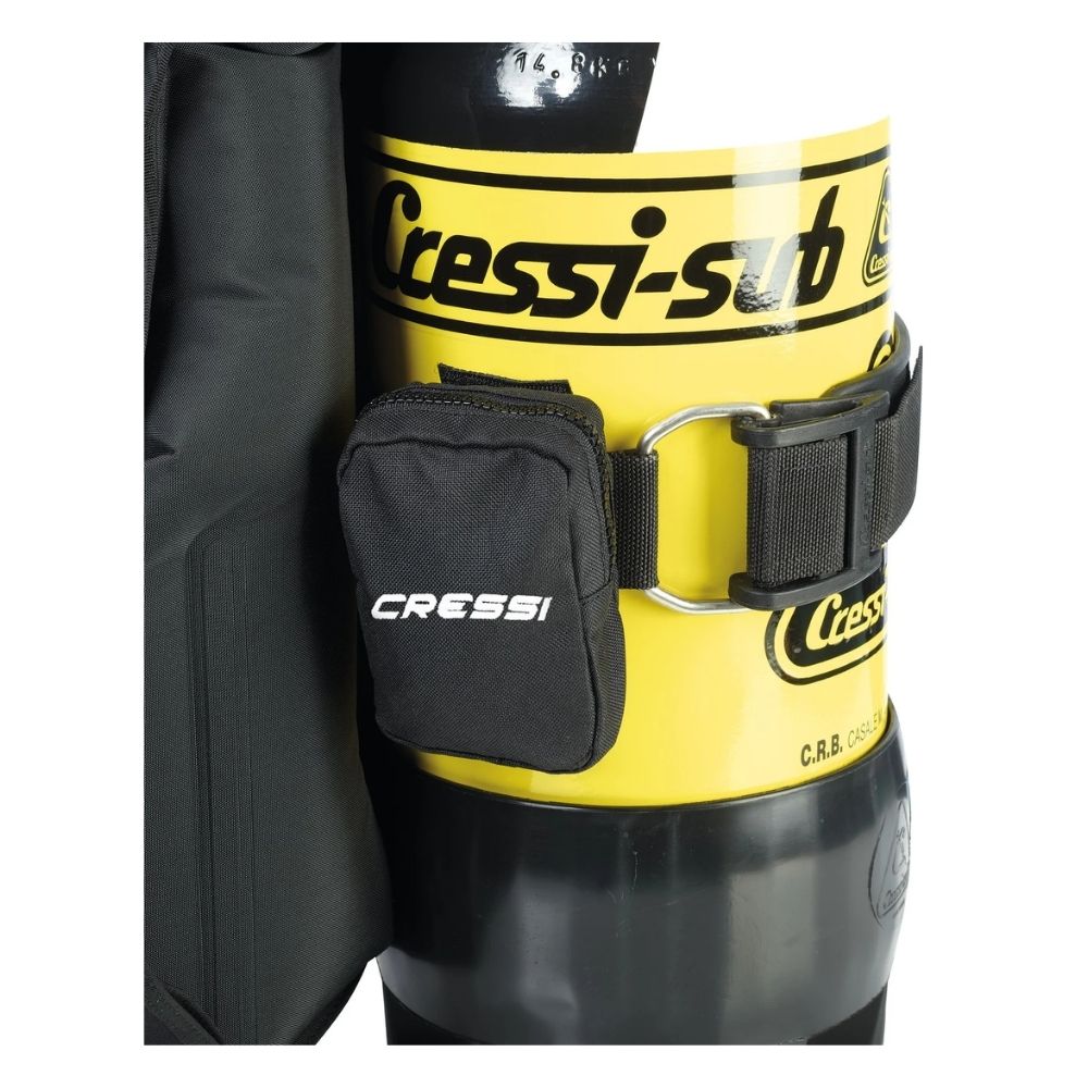 Unlike a pure wing-and-harness setup, the Commander Evo features a cummerbund-style waist strap with integrated weight pockets. Using Cressi's Flat Lock Aid quick-release design, weights are held securely in place but are easy to release when needed. Rear weight pockets on the cylinder band allow for fine-tuning your trim.