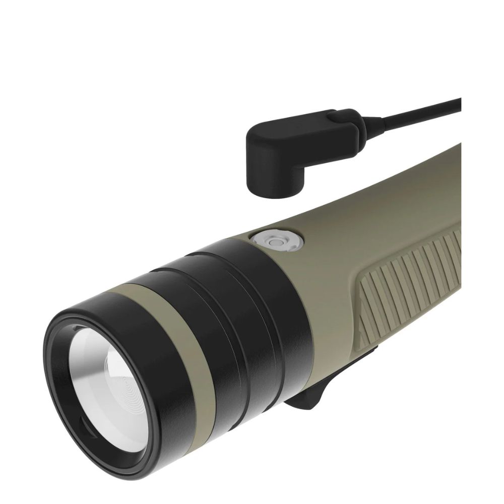 The torch is made from high-quality materials that not only provide robustness and impact resistance up to 1.5 meters but also ensure waterproofness up to 100 meters deep (IPX8). It features a built-in 5000 mAh battery, rechargeable through an innovative magnetic USB connector. This charging solution is particularly advantageous as it prevents the entry of sand, salt, or dust into the connection components, ensuring greater reliability and ease of maintenance. The torch promises up to 4 hours of continuous operation, making it an essential accessory for every spearfishing enthusiast.
